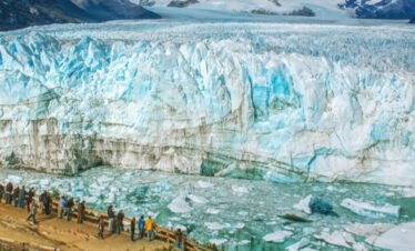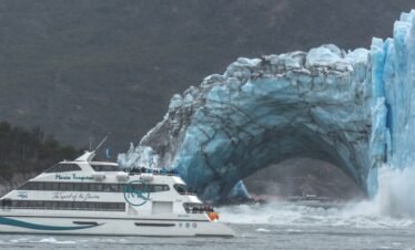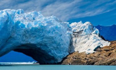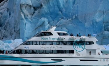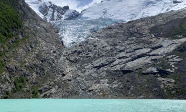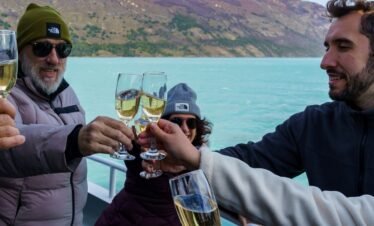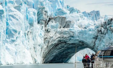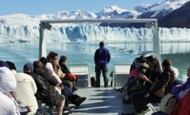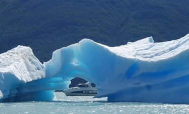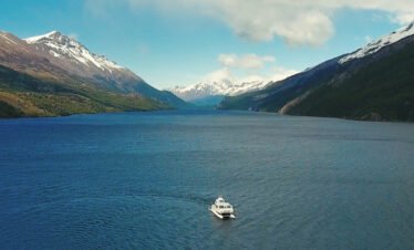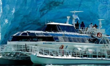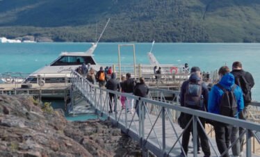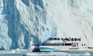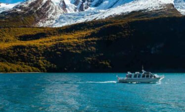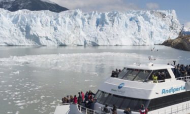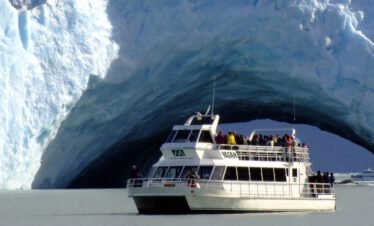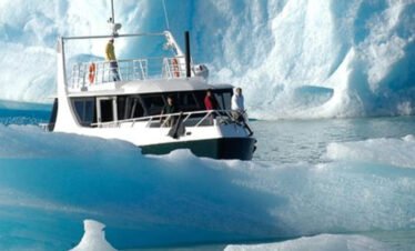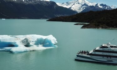 Partimos de un puerto privado en el Lago Argentino rumbo noroeste, navegando por la Boca del Diablo, de 800 metros de ancho. Avistamos Punta Avellaneda...