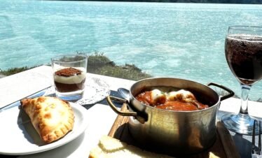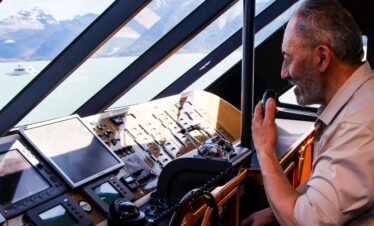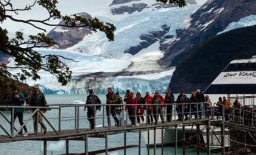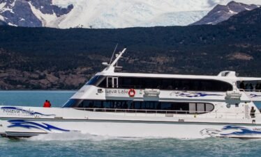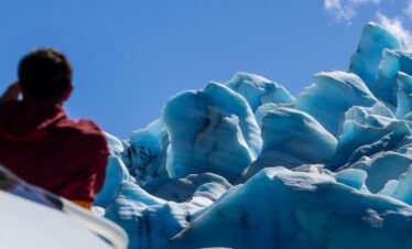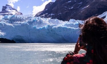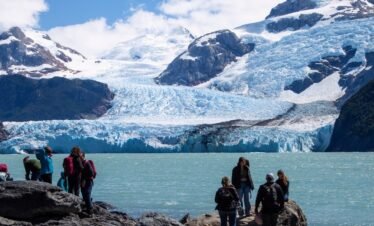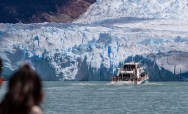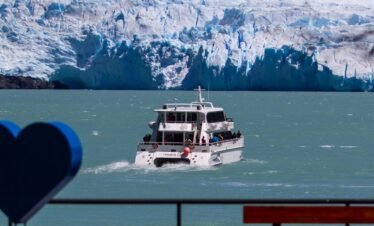 Partimos de un puerto privado en el Lago Argentino rumbo noroeste, navegando por la Boca del Diablo, de 800 metros de ancho. Avistamos Punta Avellaneda...